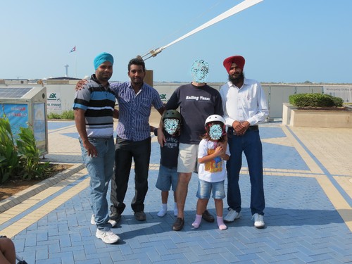 Num dos nossos passeios, a treinar a arte de patinar, somos abordados por estes três senhores. Queriam tirar fotos connosco. Primeiro sozinhos com o Francisco, depois pediram para tirar com as crianças. Vai daí nós resolvemos também pedir-lhes uma foto de grupo.