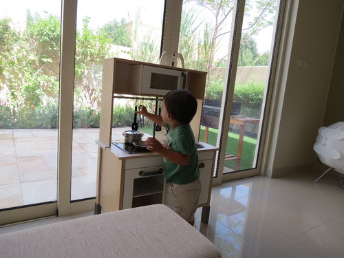 Só para depois não me virem dizer que eu não os habituei a fazer nada em casa, e que lhes fazia tudo e que a culpa de terem um homem que não partilha tarefas domésticas é minha. Está aqui a prova que desde cedo os habituei a lidar com tachos. Mais ainda: o presente de aniversário do António foi um kit de limpeza com vassoura, pá, esfregona e um aspirador. Ele adorou e anda sempre freneticamente a "limpar" a casa...