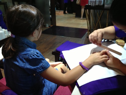 As unhas cresceram-lhe. Temos cá em casa alguém muito contente com os seus pés pintados de azul e as mãos de cor de rosa. A Francisca parecia estar muito à vontade com a senhora a arranjar-lhe as unhas...